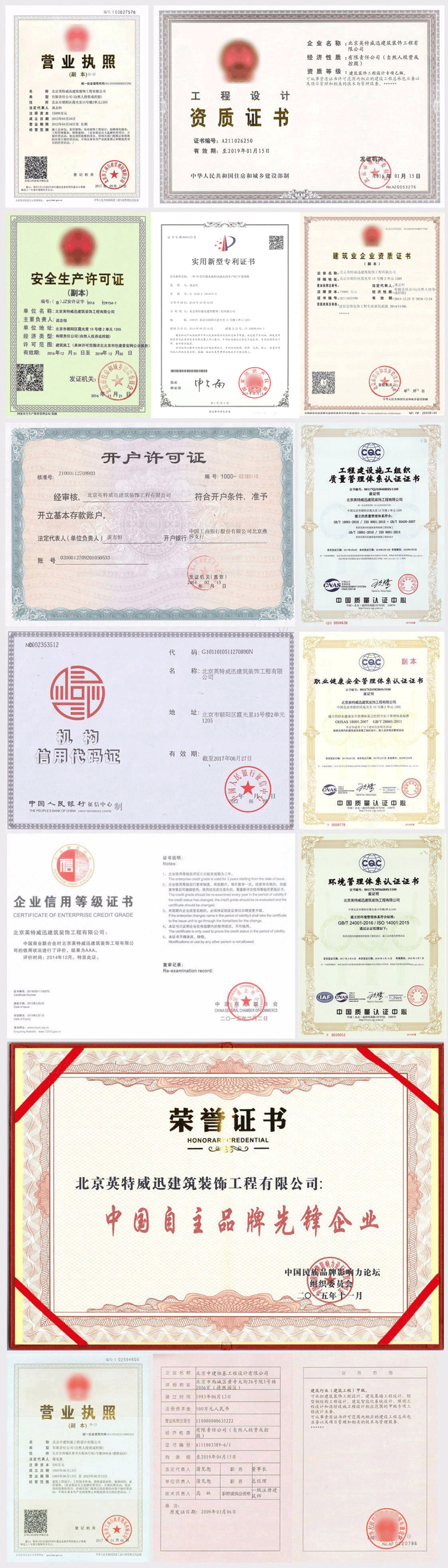 北京英特威迅建筑裝飾工程有限公司創(chuàng)建于2008年,專業(yè)從事工程裝修全案設(shè)計(jì)及施工,已承接工程案例3000余項(xiàng),涉及辦公、醫(yī)院、學(xué)校、商業(yè)、酒店、博物館、別墅等場(chǎng)所的裝修設(shè)計(jì)、施工及消防系統(tǒng)、空調(diào)系統(tǒng)、弱電系統(tǒng)、智能化系統(tǒng)等項(xiàng)目。