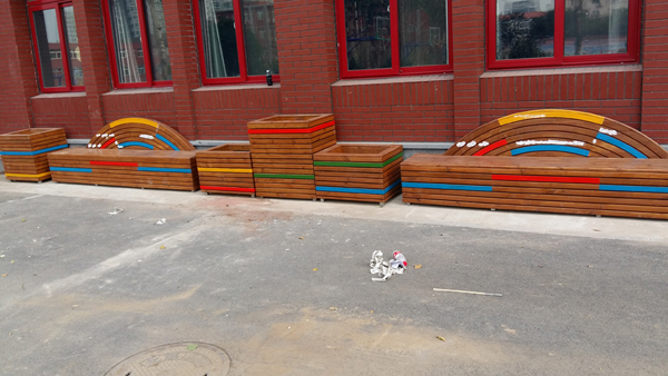 防腐木造型花壇座椅