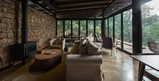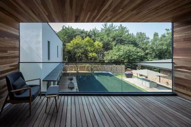 在觀景體驗的營造上,設(shè)計著重表達了與自然“對坐”的觀念。充滿儀式感的框景角度與院落軸線,無不提醒使用者思考“人——天『自然』”這一組對象的對話關(guān)系。而自然、在地的材料使用:木、石、鐵、白色涂料及玻璃,也暗示著一種自然建造的鄉(xiāng)野現(xiàn)實。