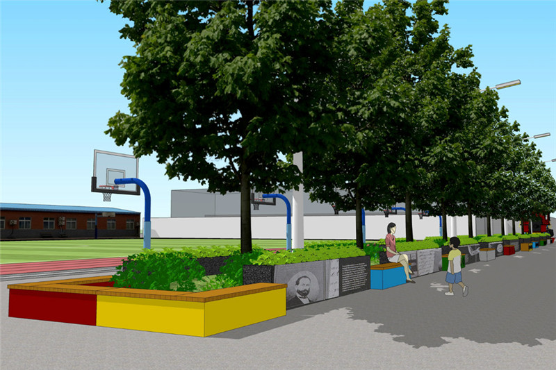 在許多學(xué)校,通過植被和其他設(shè)施的設(shè)計(jì),使圍墻具有宜人的環(huán)境,成為學(xué)生課后的好去處,具有促進(jìn)交流提高校園生活質(zhì)量的作用。