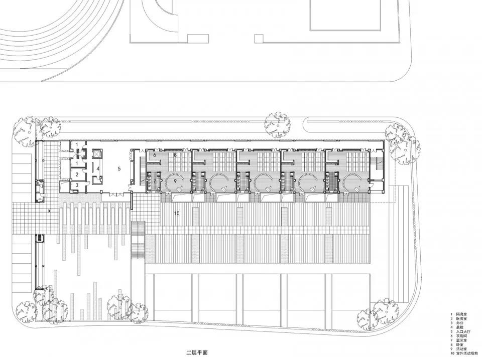 建筑中間的內(nèi)院使一層北側(cè)行政和服務(wù)空間也可得到足夠的采光。在景觀方面,每個(gè)班級(jí)都有對(duì)應(yīng)的綠地供幼兒活動(dòng)。