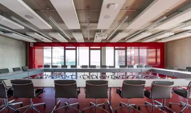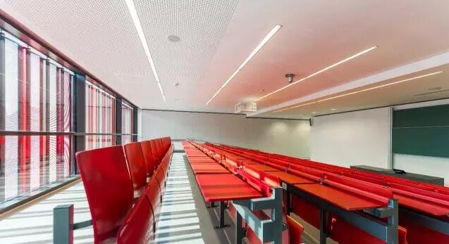 階梯教室中心的大堂一面朝向校園另一面朝向杜伊斯堡大街,既通向西面的有軌電車又與北面的食堂相通。兩條有代表性的逃生樓道直通上層的教研室和階梯教室。該設(shè)計(jì)正是采用了Rochade理論。由圖書(shū)館而產(chǎn)生的結(jié)構(gòu)可實(shí)現(xiàn)多樣化的可變使用風(fēng)格,充分利空間,將該區(qū)域劃分為兩層,在滿足空間需求的前提下也提供了最佳的層高。