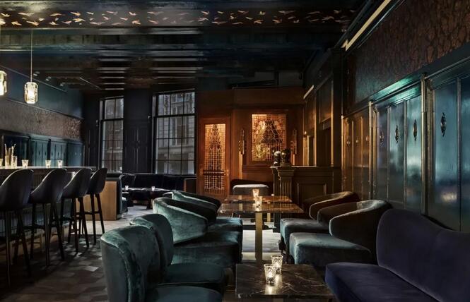 House酒吧位于歷史悠久的荷蘭女王大樓?;谠械姆苛汉湍緣?,酒吧的室內(nèi)空間呈現(xiàn)出富有光澤的暗青色調(diào)。建筑師在天花板的房梁之間鋪上了帶有小鳥(niǎo)圖案的墻紙,這一做法致敬了文藝復(fù)興時(shí)期荷蘭的傳統(tǒng)壁畫(huà)。華麗舒適的絲絨座椅和低處的照明使酒吧更具戲劇感和愜意的氛圍。