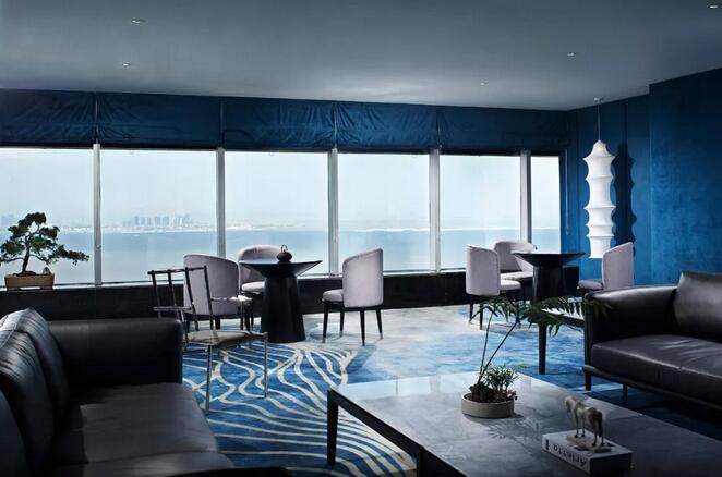 多功能廳內(nèi)靜謐的藍色大面積渲染墻和地面,無疑是一道靚麗的風景線,純粹如巴勃羅·畢加索的名作《藍色房間》一般流光旖旎。