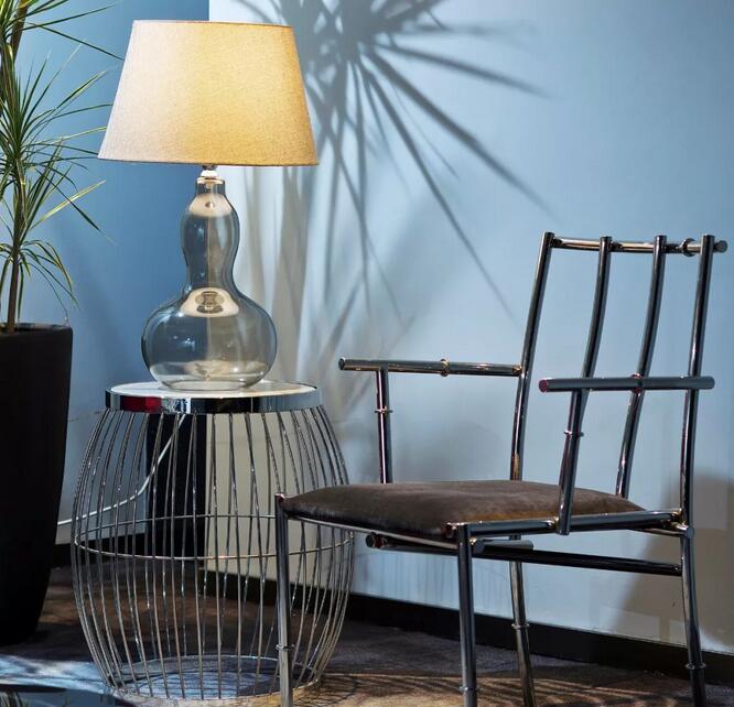 傳統(tǒng)中式的座椅泛著金屬光澤,鳥籠般的邊幾造型別出心裁。復(fù)古的外觀與現(xiàn)代功能相結(jié)合,既滿足了懷舊情結(jié),又保證了現(xiàn)代生活的舒適與方便。