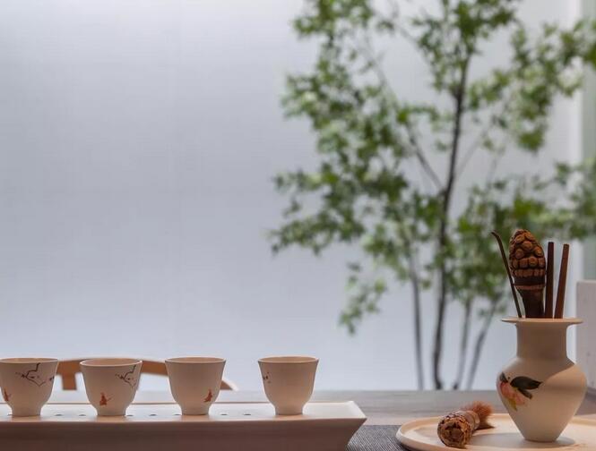 柔和的乳白色和棕色調(diào),裝飾木質(zhì)的藝術(shù)品,氛圍寧?kù)o而雅致。