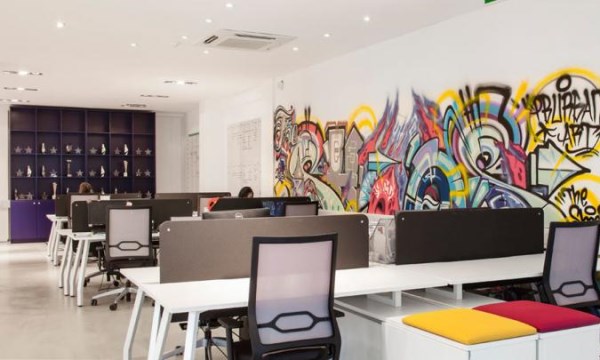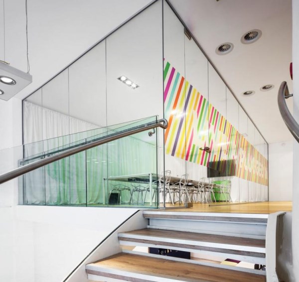 該辦公空間展示出了無限的創(chuàng)造力,從接待處旁邊看,懸掛在彎曲的臺(tái)階墻上的“我們都在線”的標(biāo)語到使辦公室變得活躍的涂鴉墻,每個(gè)元素都是精心挑選,可以增強(qiáng)品牌的意識(shí),提升整體的創(chuàng)造力水平。