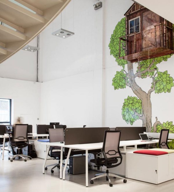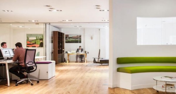 接待區(qū)中心的裝飾樹像是邀請(qǐng)顧客到藍(lán)沙發(fā)上來休息,想象一下在這個(gè)創(chuàng)造力十足的空間工作吧!通過一些細(xì)節(jié)鼓勵(lì)創(chuàng)造力和合作,能夠填補(bǔ)員工之間的間隙。