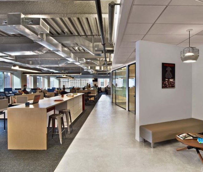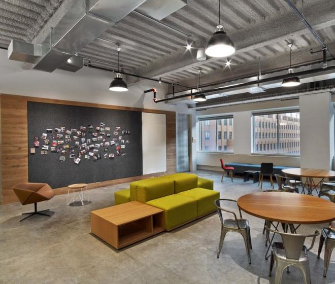 客戶(hù)進(jìn)入辦公室應(yīng)該可以通過(guò)辦公室的顏色、形狀和工作氛圍來(lái)描述出該公司是做什么的,并且怎么做的。Tough Mudder的總部就是這樣的設(shè)計(jì)作品,該辦公室是由M Moser Associates完成的。