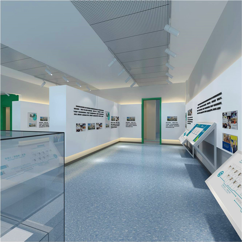 地面不同顏色的色帶將空間功能分布簡(jiǎn)單明了的說(shuō)明給參觀人員。