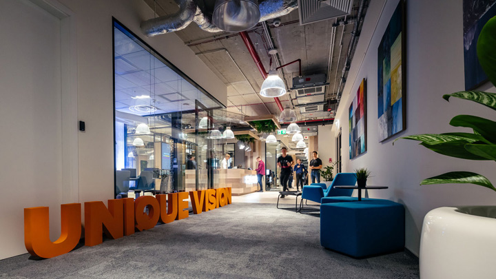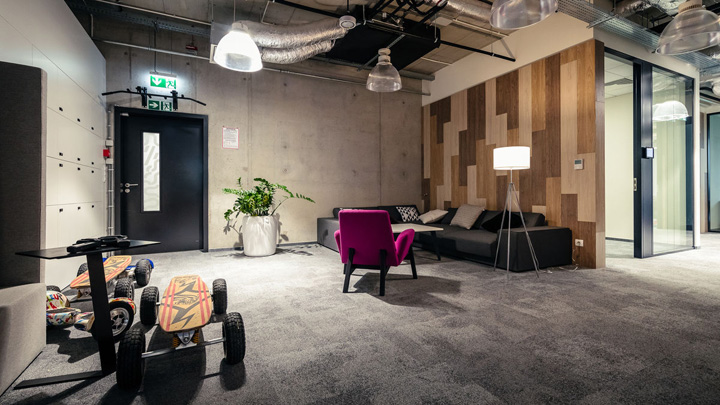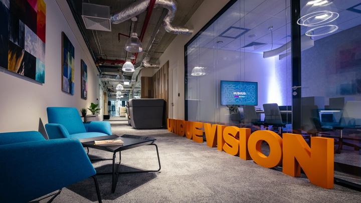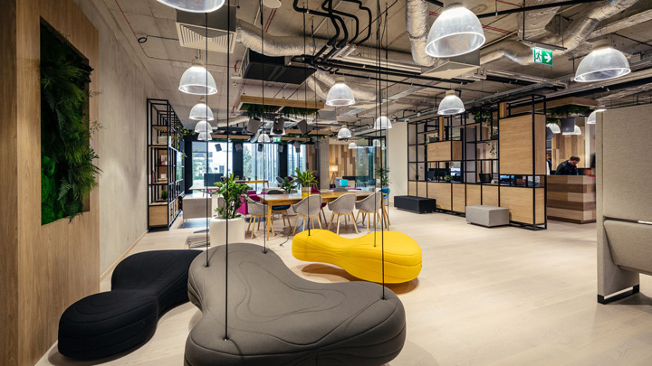 來自波蘭In Design設(shè)計團隊的作品HUBHUB極好的詮釋了這樣的理念。一樓布局更為靈動多元,這里以共享工位為主,配以會議室、咖啡吧、大型開放休閑空間。裸露的混凝土表皮配以大量溫暖的木飾面,塑造出一個溫暖的單色基調(diào)。通過時尚的家具配置和巧妙的綠植點綴創(chuàng)建一個靈動多元、促進交流分享的共享辦公空間。二樓以個人與共享的封閉辦公室為主,但隨處可見供休閑交流的公共空間。