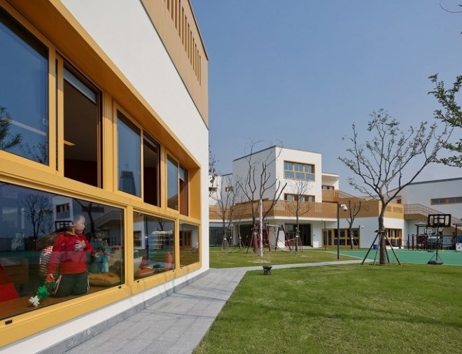 安亭位于上海西北角與蘇州花橋接壤的地方。地鐵11號(hào)線安亭站南邊正在形成一片新的生活社區(qū),社區(qū)的中心是社區(qū)教育、文化及商業(yè)設(shè)施,這座幼兒園是社區(qū)的三所學(xué)校之一,也是率先建造的公共建筑,由安亭汽車(chē)城出資,德威教育集團(tuán)(Dulwich)和華師大合辦。