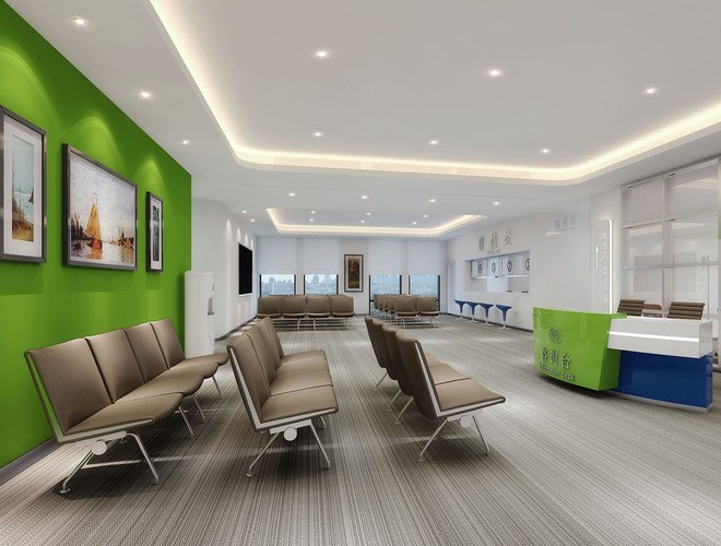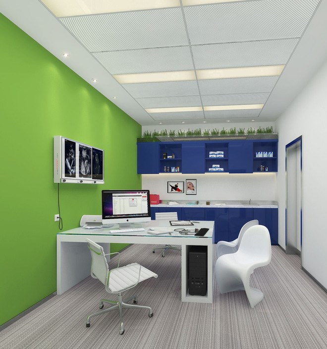 這兩種顏色都屬于可以給患者帶來安靜,平穩(wěn)的心情的顏色,但這兩種顏色又是屬于冷色系,我們不能讓本來就冷冰的醫(yī)院再添加太多冷色系的元素,空間需要有動(dòng)感,由暖色系來作為主色調(diào)。