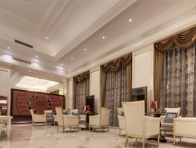 售樓處的造型是在傳承這樣的的一種理念,利用現(xiàn)代的半透明的金屬幕簾這樣一種綠色環(huán)保材料形成內(nèi)外空間的在視覺上和空間上內(nèi)斂而優(yōu)雅的過渡,半透明材料所呈現(xiàn)的若隱若現(xiàn)的視覺模糊傳遞著層次豐富的空間縱深感。