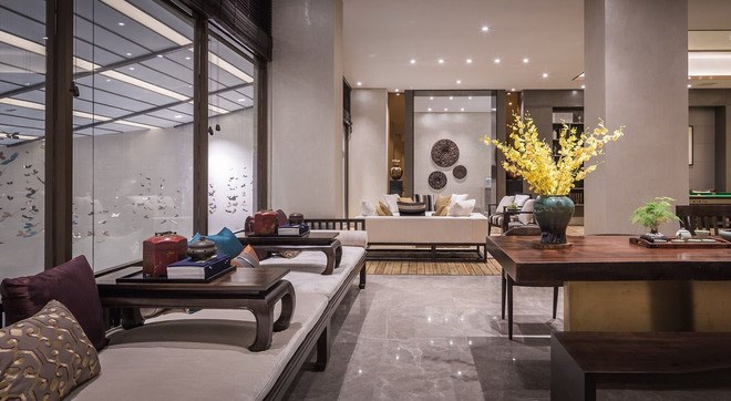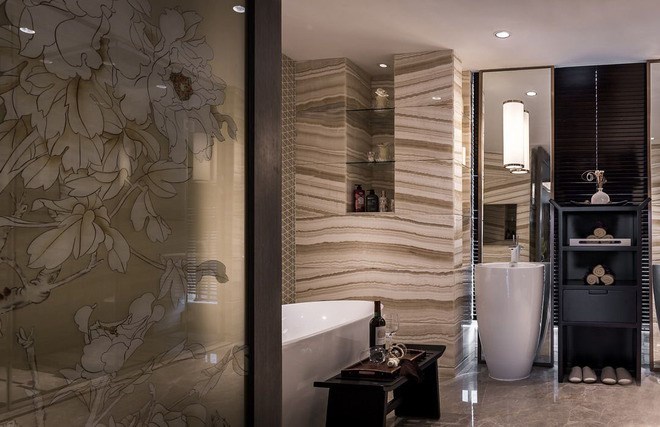 山水的抽象意念,對(duì)比中體現(xiàn)出對(duì)細(xì)節(jié)的推敲和尺度的精準(zhǔn)把控,既和室外的風(fēng)景遙相呼應(yīng),又為客人帶來(lái)舒適而尊貴之體驗(yàn)。我們通過(guò)循空間之自然、理功能之關(guān)系、揉傳統(tǒng)之元素,最終呈現(xiàn)出一個(gè)立體、豐富而有蘊(yùn)含中國(guó)傳統(tǒng)文人士大夫氣質(zhì)的山水之所。