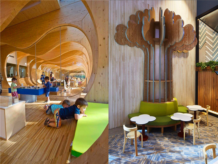 游戲室設(shè)計靈感來至于洞穴,將原本生硬的四方建筑改造成一個從滿靈動的空間,讓孩子在探索中學(xué)習(xí)成長,同時也能滿足隔音效果。