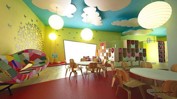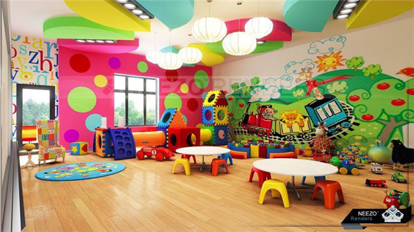 本案設計元素來源于七彩虹,整個空間以七彩為設計思路。幼兒天生就對顏色鮮艷的事物感興趣。那么,大千世界有些什么顏色呢?
