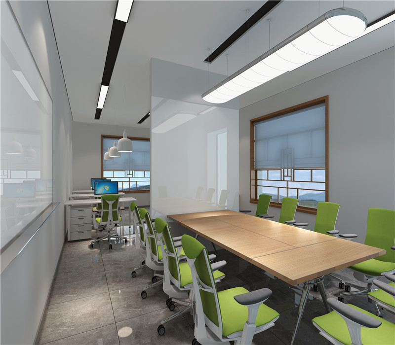 該項(xiàng)目位于北京市朝陽區(qū)外運(yùn)大廈辦公樓內(nèi),在9680平米的工作樓層中,在空間設(shè)計(jì)中大膽的使用藍(lán)色和綠色圖案區(qū)分出不同的區(qū)域,并選擇相應(yīng)顏色和材料的家具和吸音墻板與之搭配。在每個樓層的局部空間都設(shè)有兩三個公共區(qū)域,包含茶歇區(qū),電話亭,打印間和會議區(qū)等功能,可以促進(jìn)員工之間的交流。
